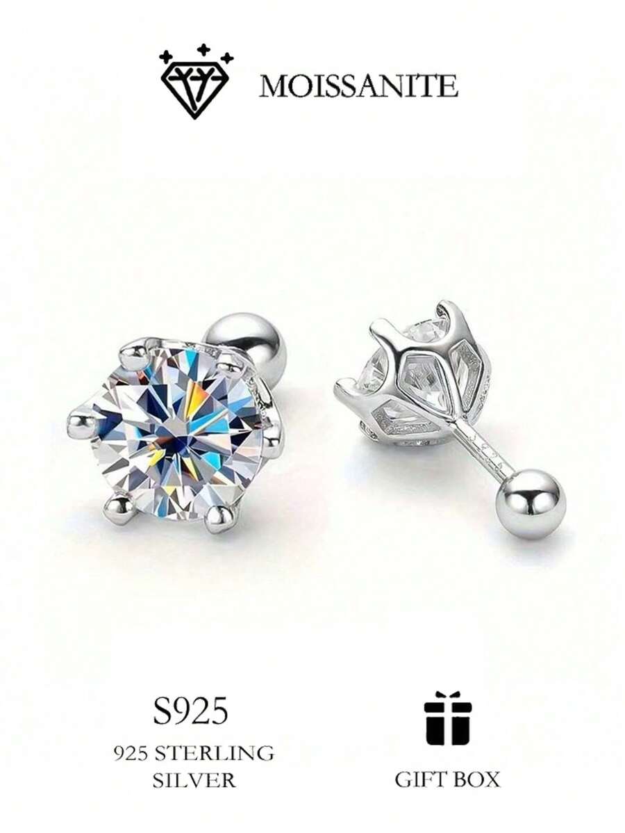 0.5ct*2 扭曲六爪银耳钉 S925 银防过敏时尚耳环,镶嵌耀眼的莫桑石,是送给她的理想礼物,适合任何场合的优雅时尚珠宝
