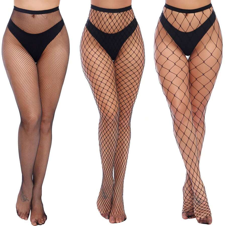 1-4双装女士高腰印花渔网袜,吊带连裤袜及大腿袜,黑色圣诞礼物