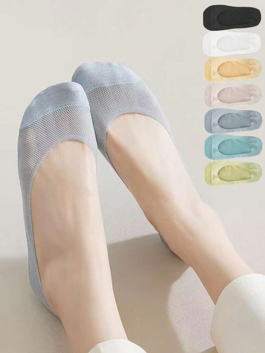 1/5/10双装女士夏季隐形船袜,无缝低帮袜,网眼透气硅胶防滑内衬袜