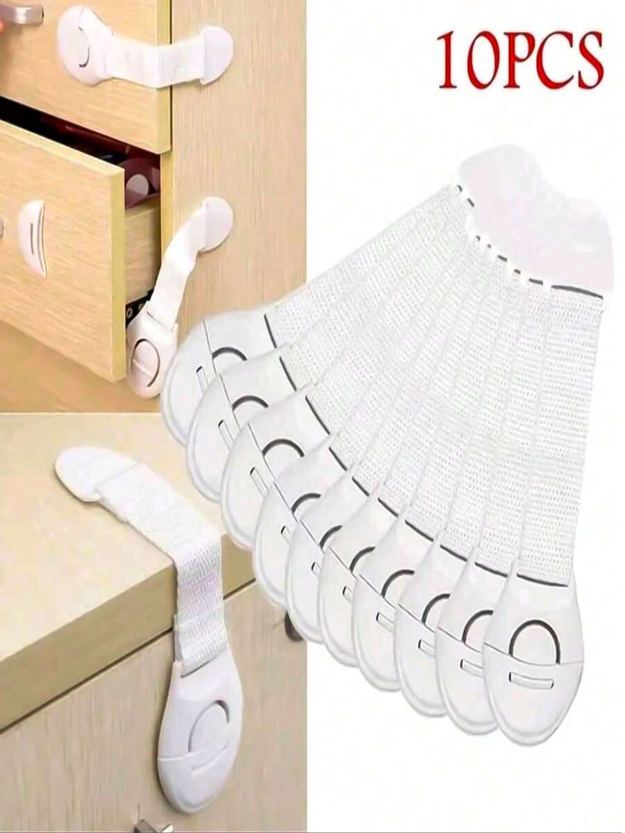 1/5/10件装多用途绑带锁,适用于橱柜、抽屉和马桶 - 可调节尼龙织带约束带,带安全扣件