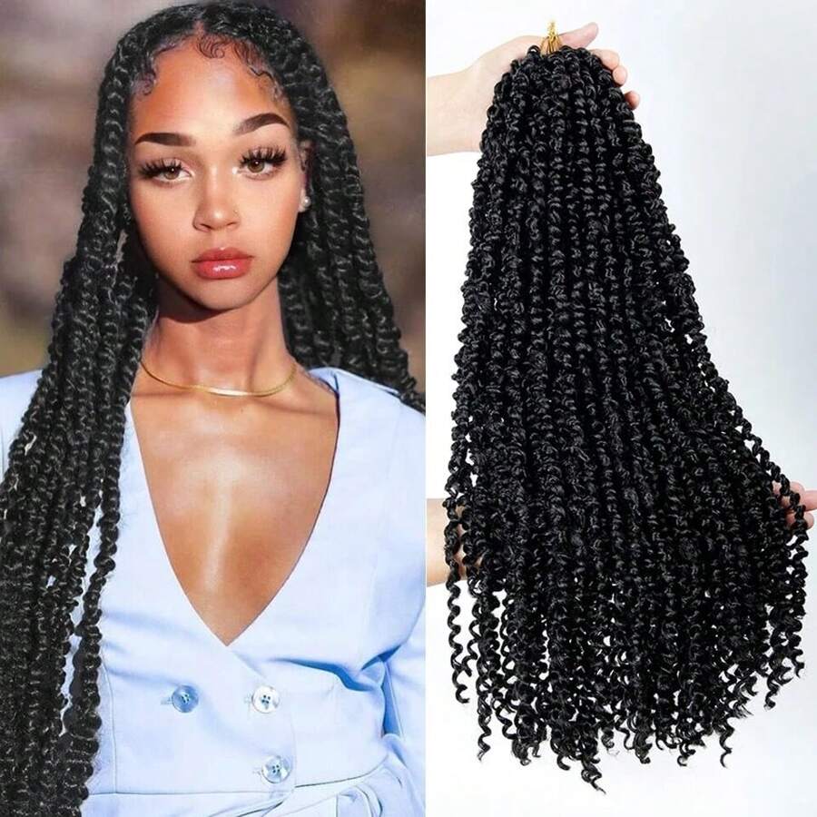 DZfirst 1 包(16 件)Passion Twist 假发水波纹卷发合成编织发黑色 30 英寸合成耐热假发接发预拔