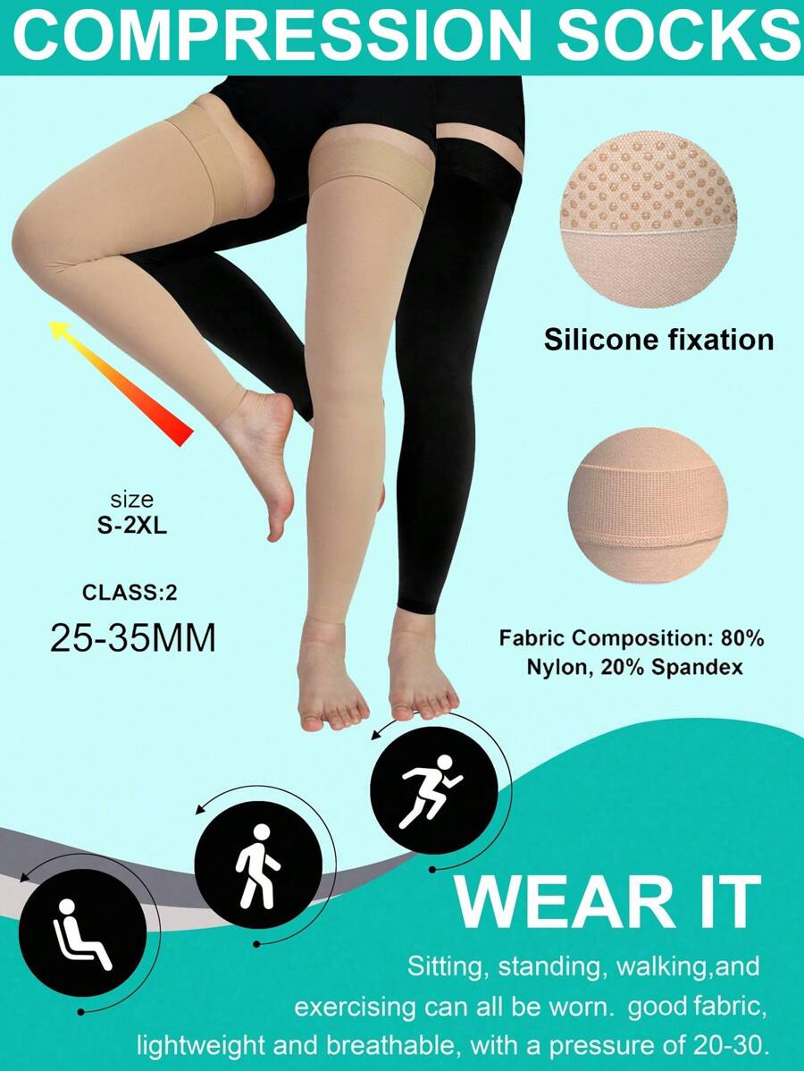 1双黑色加大码压缩袜,同色压缩袜,适合女性,不透明无趾连裤袜,男士运动袜,多功能长袜,硅胶固定,腿部和膝盖保护,Y2K风格,舒适