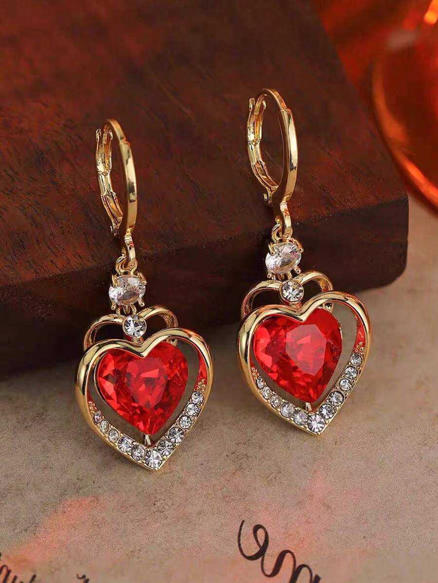 一对优雅别致甜美奢华高端玻璃镶嵌心形设计耳环,时尚百搭,适合女性日常通勤、节日、派对、情人节礼物