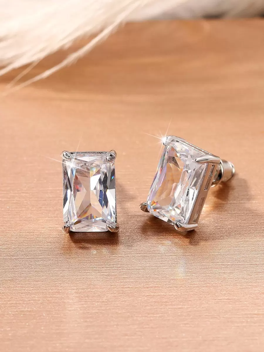 • 一对时尚立方氧化锆耳钉,女士婚礼订婚周年纪念派对珠宝情人节礼物