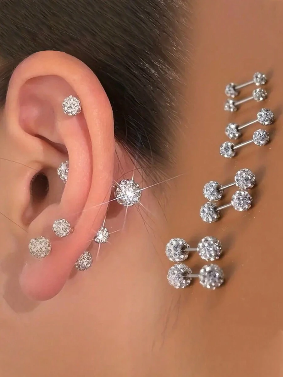 一对螺纹耳环,球形设计,镀层螺旋人造水晶,时尚首饰,送给女孩的礼物