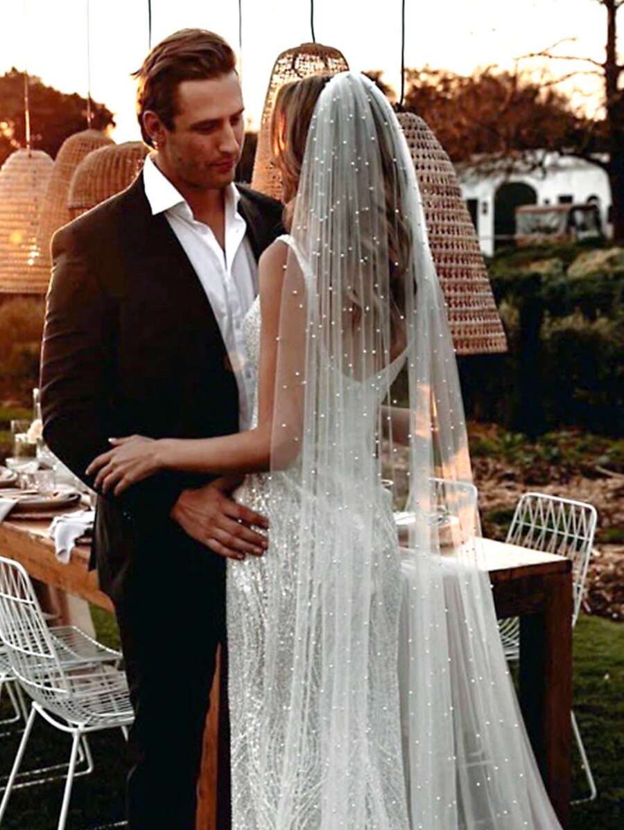 1 件带珍珠的新娘面纱,婚礼派对摄影道具,适合婚礼仪式或登记处头饰,带发梳,女士秋季服装
