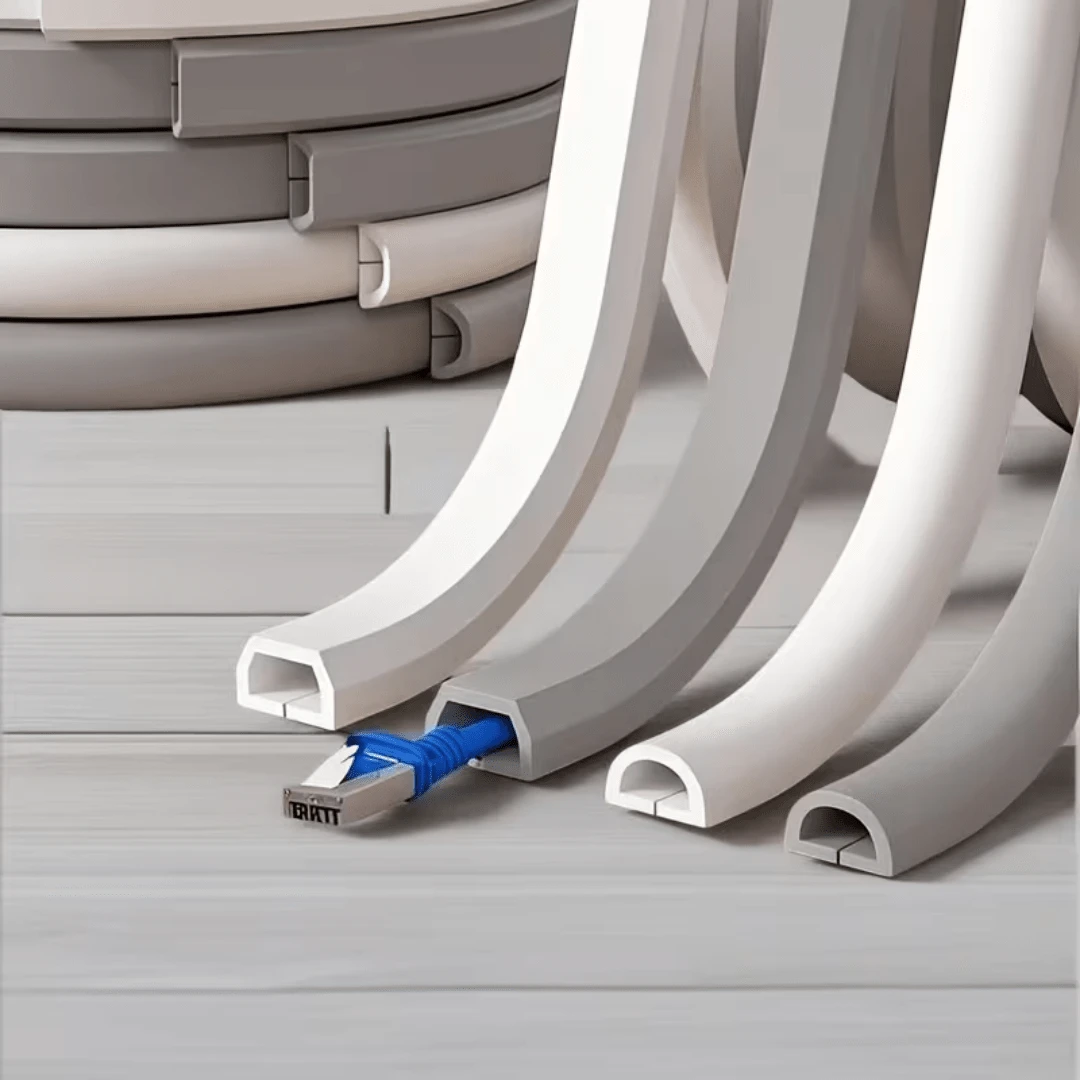 1卷2米/78.74英寸自粘式电缆套管 - 墙面和地面电缆管理系统,安装简便,隐蔽式电缆解决方案,简约电缆槽,柔性电缆盖