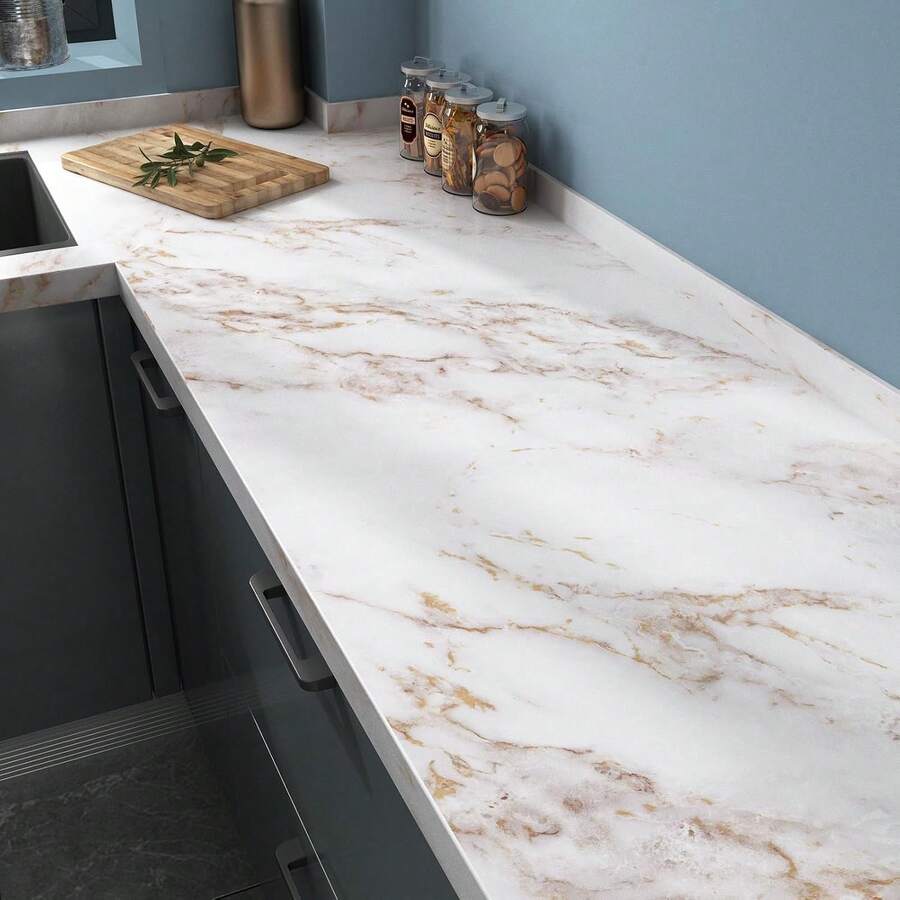 1卷自粘大理石纹乙烯基接触纸,防水壁纸,适用于厨房橱柜、家具翻新、房间装饰,易于粘贴,形状和条纹图案,随机拼接,家居装饰客厅、厨房、卧室、现代浴室装饰,美观壁纸