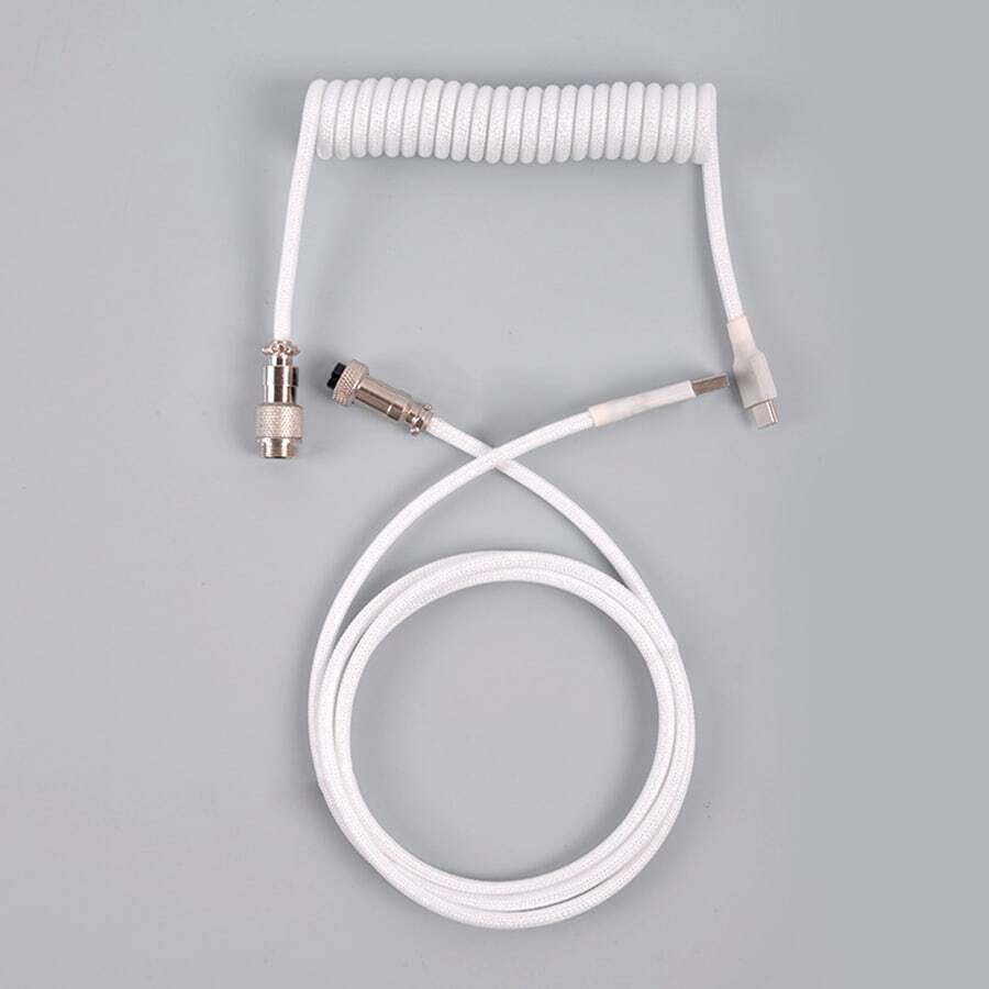 1套(2入組)白色可拆卸遊戲機械鍵盤線空中插入數據線帶彈簧延伸和Type-c 接口/線圈編織材料/機械鍵盤定制導航和數據線/個性化彈簧線/DIY USB 鍵盤充電線(帶可拆卸金屬先導連接器)1.5m