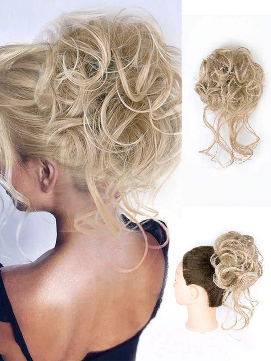 10 英寸合成凌乱发髻发圈卷发弹力发带蓬松发髻甜甜圈发髻假发片马尾接发女士