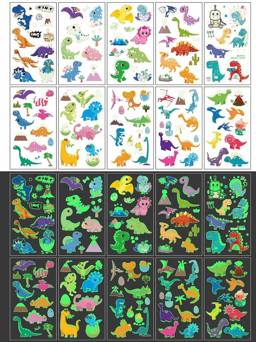 10 張恐龍發光臨時紋身,防水假紋身玩具,兒童女孩男孩恐龍派對禮品用品派對配件,發光派對用品禮品,臉部紋身貼紙