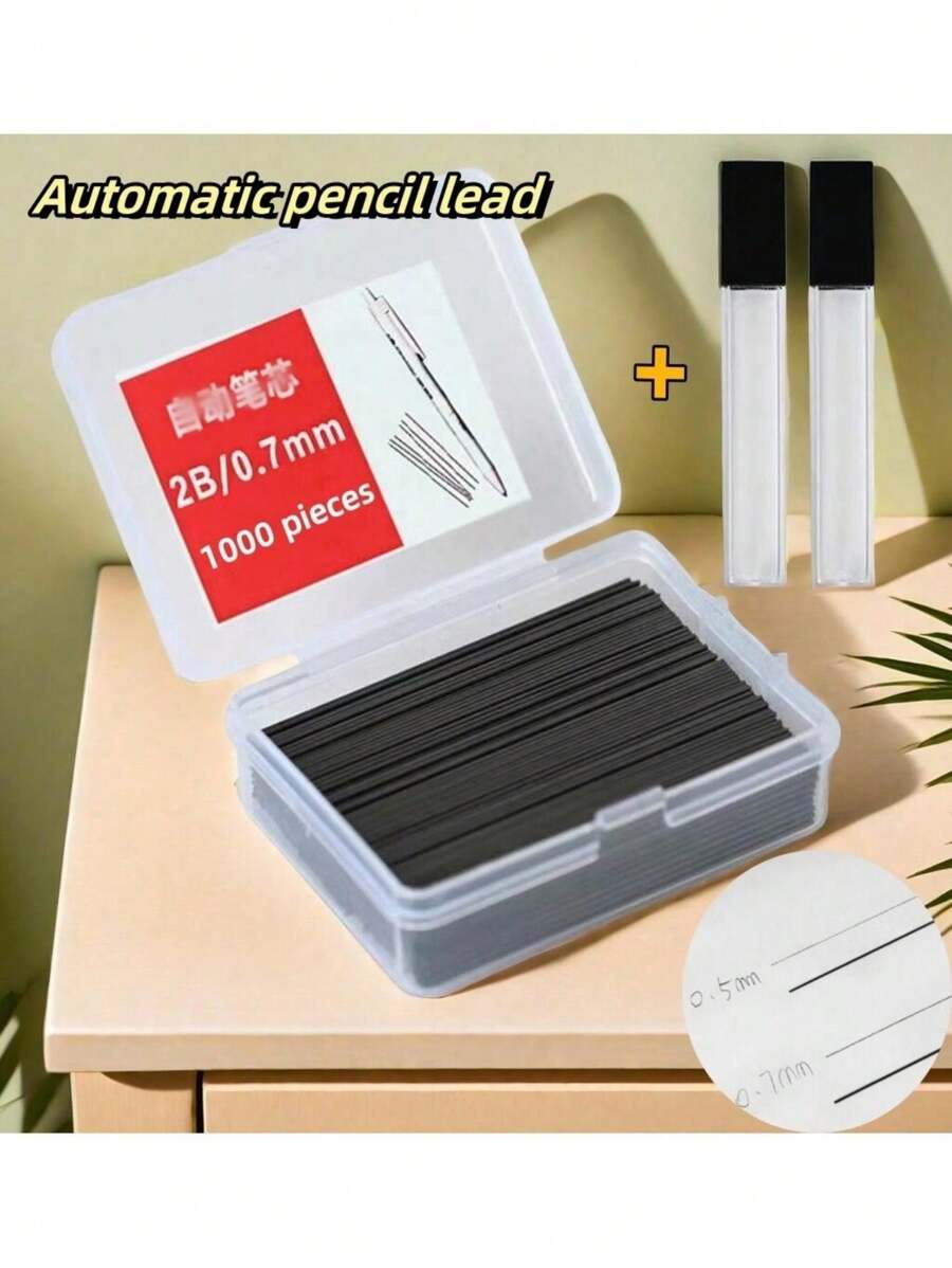 1000 支 0.5 毫米和 0.7 毫米自动铅笔芯替换芯,2B 级,含 2 个铅笔芯支架,高品质,大容量,方便携带