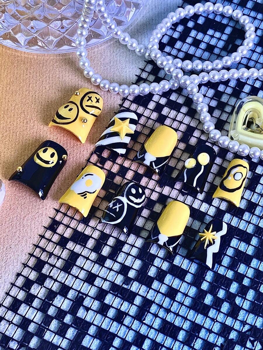 10片装女士手工按压式美甲贴片,Y2K风格,情人节主题,亚克力材质,手绘笑脸星形图案,可重复使用,美甲套装,含指甲胶、凝胶指甲油、美甲贴纸,美甲师用品配件,假指甲,亚克力按压式美甲贴片