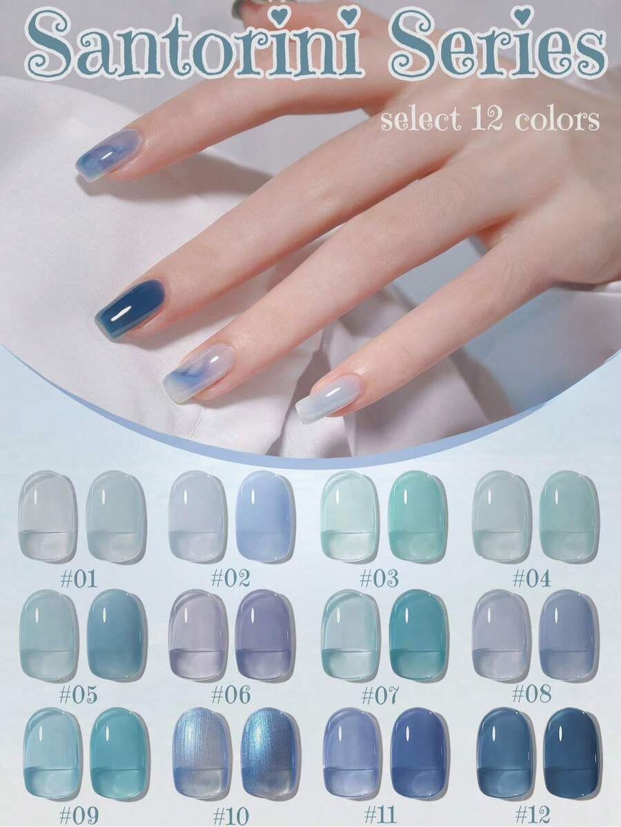 10毫升春季流行蓝色圣托里尼系列凝胶指甲油 2026 新款美白冰透明天蓝色美甲沙龙专属美甲用品 情人节美甲 Azure Nails