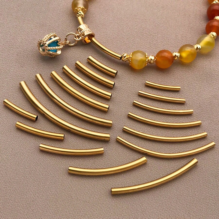 10 件 304 不锈钢管珠长弯管面珠连接器散珠适用于 DIY 腕链脚链项链首饰制作