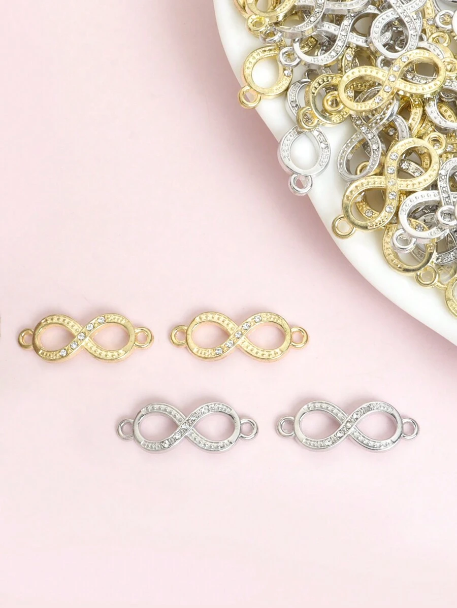 10 件创意无限标志水钻镶嵌镂空吊坠连接器 - 带双挂幸运数字 8 设计合金链接的饰品,适用于 DIY 男女时尚手链项链脚链 - 个性化礼物的独特配饰
