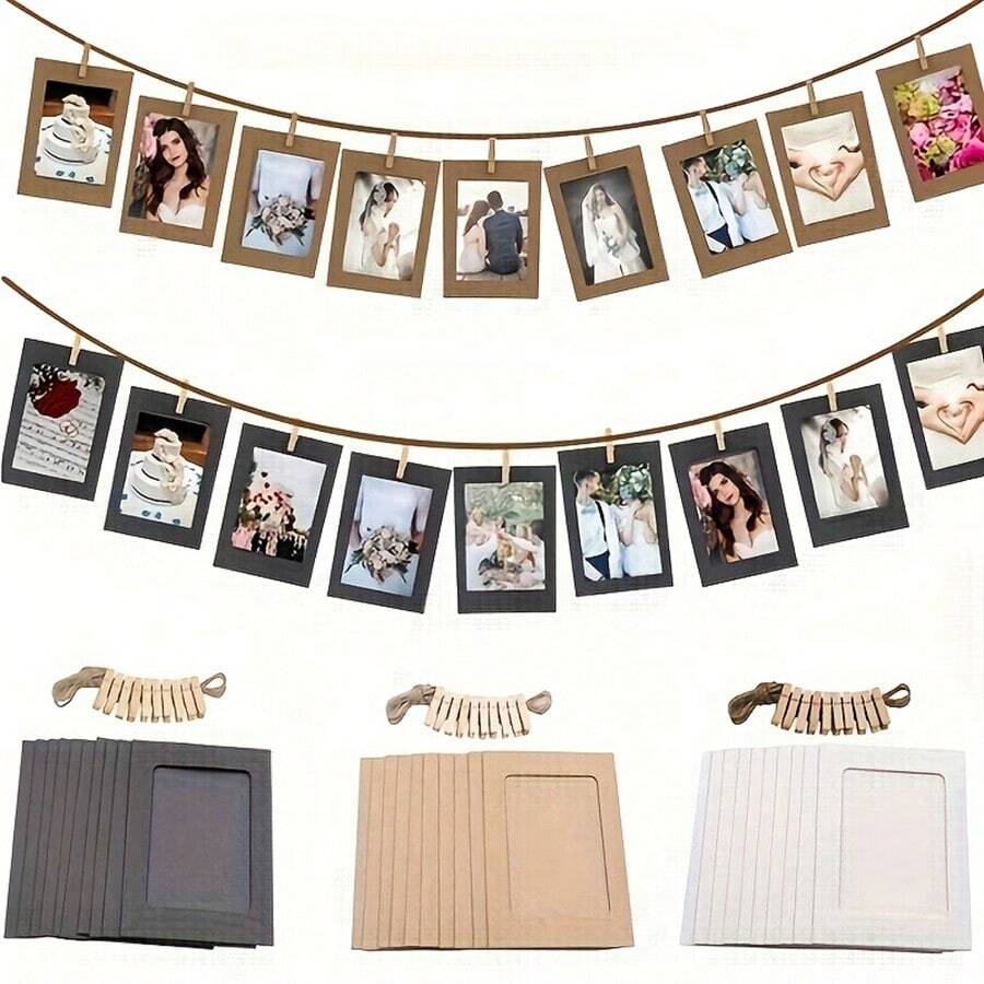 10 件/套纸质照片横幅,悬挂照片墙,适用于婚礼、周年纪念、生日、节日派对、家居装饰、桌面 DIY 装饰(带夹子和麻绳)