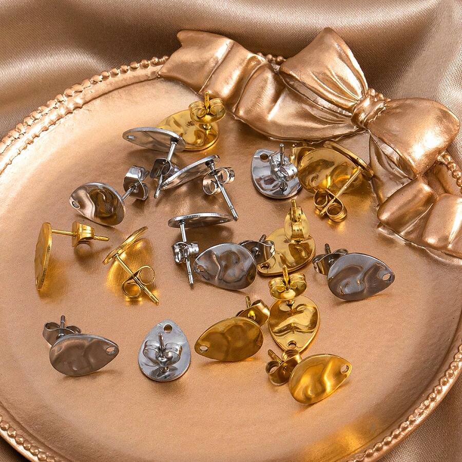 10个不锈钢水滴形耳环底座,带挂孔,适合DIY吊坠耳环制作