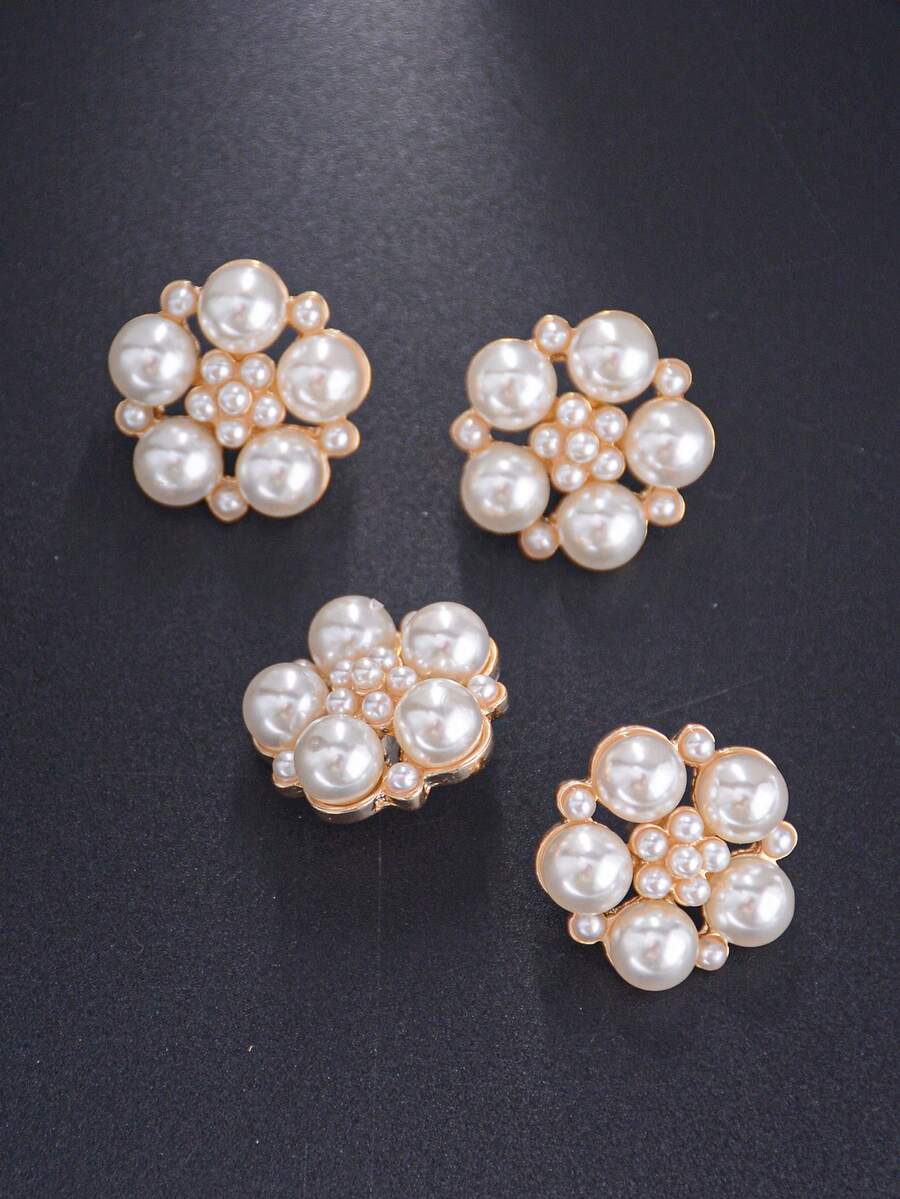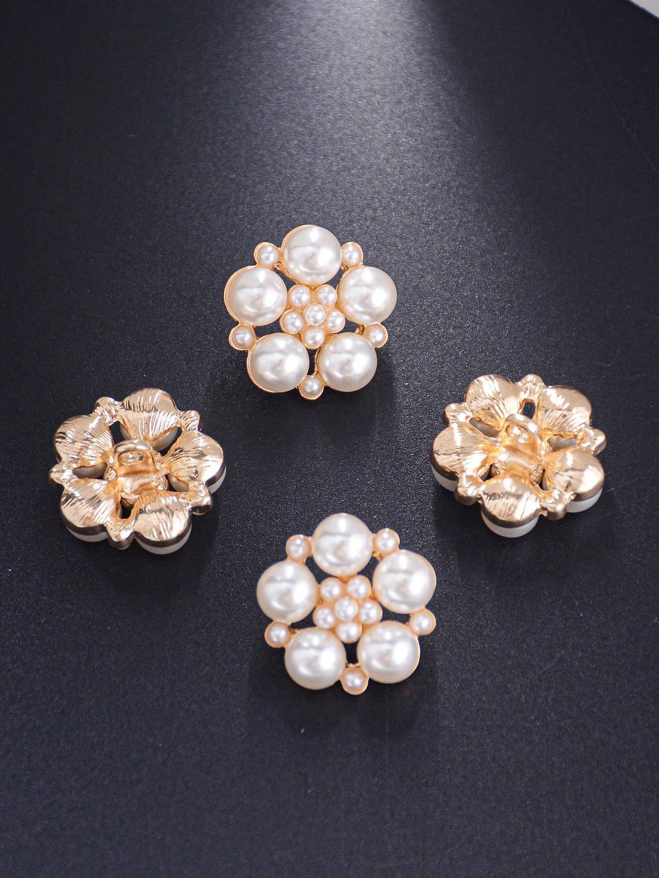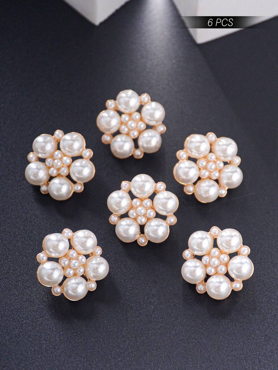 6入組/包裝珍珠圓盤和花狀金屬按鈕,適用於女裝、頭飾、手袋、鞋子、花束diy裝飾