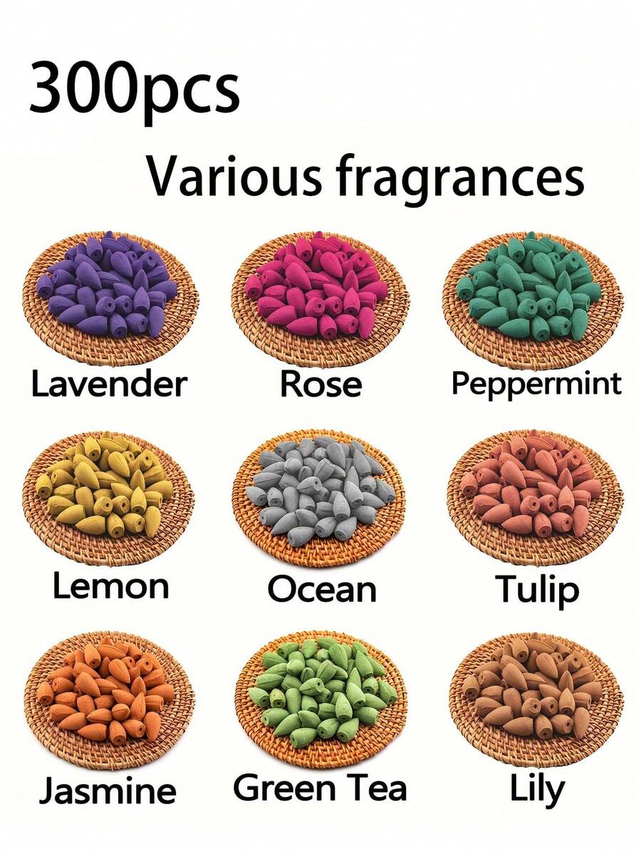 118/300个天然倒流香锥 - 多种香味,适用于冥想和瑜伽 - 非常适合瀑布式香炉,可用于房屋净化、冥想、瑜伽、清除负能量以及清洁家居或办公室