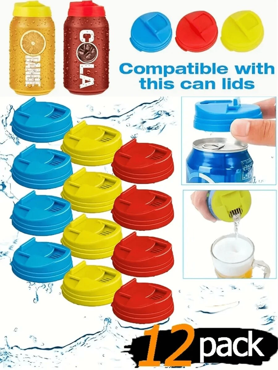 12/6 /3 件多色汽水罐盖 - 防漏可重复使用的塑料饮料保护器适合标准 2.4 英寸罐,易倾倒防溢塞,饮用无杂乱,汽水罐盖,有趣而充满活力的风格,多种颜色,彰显个性化