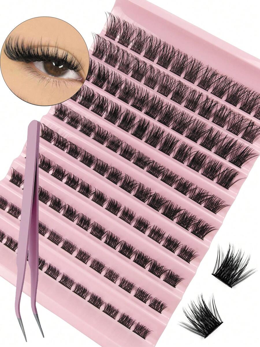 120片独立簇状假睫毛,带镊子,柔软自然,D型卷翘,长度8-16毫米混合,DIY嫁接睫毛,蓬松轻盈,分段嫁接假睫毛,送给女性和女孩的好礼物