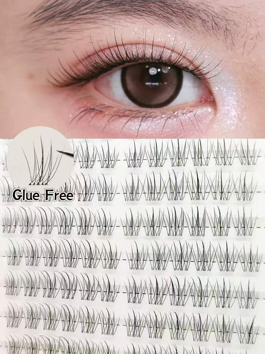 No Other Material,無需膠水,仙女毛,密排,簇狀睫毛,A型,點膠朵毛