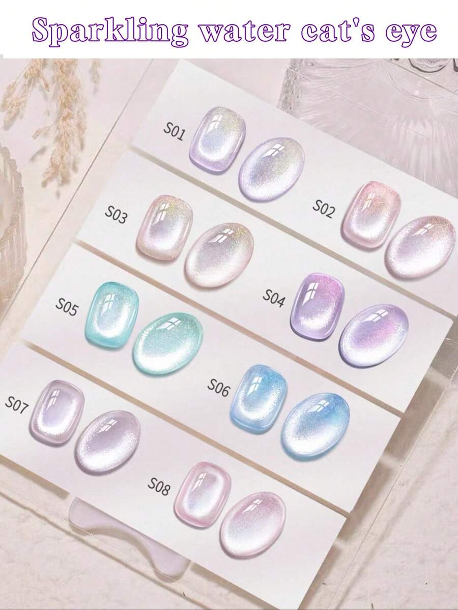 • 12毫升容量 2026 春夏新款女士假日礼盒套装,内含气泡水、半透明冰岛极光猫眼裸粉色仙女彩虹云锦碎片、猫眼冰透明紫金粉日记桃猫眼玻璃珠水晶石猫眼凝胶指甲油。 - 彩色 - 查看 8