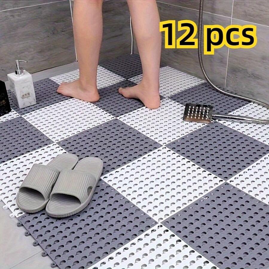 12 件套优质防滑浴室地垫套装 - 防水、防潮、易清洁,带排水孔,适用于家庭、酒店和餐厅 - 打造舒适沐浴体验的完美装饰。浴室防滑地垫,浴室淋浴房地垫