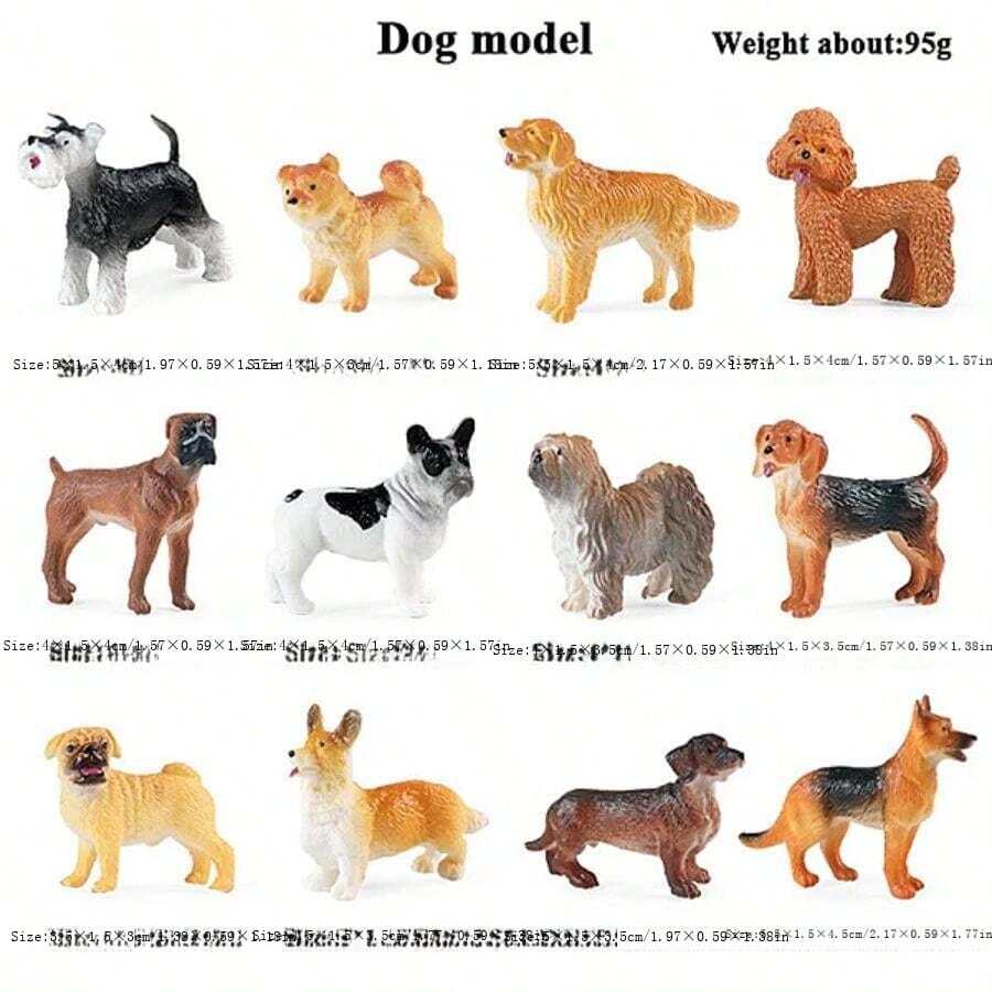 12 件/套迷你逼真彩绘塑料狗公仔玩偶套装,非常适合蛋糕装饰、圣诞节和生日礼物,迷你塑料动物,迷你公仔,迷你动物