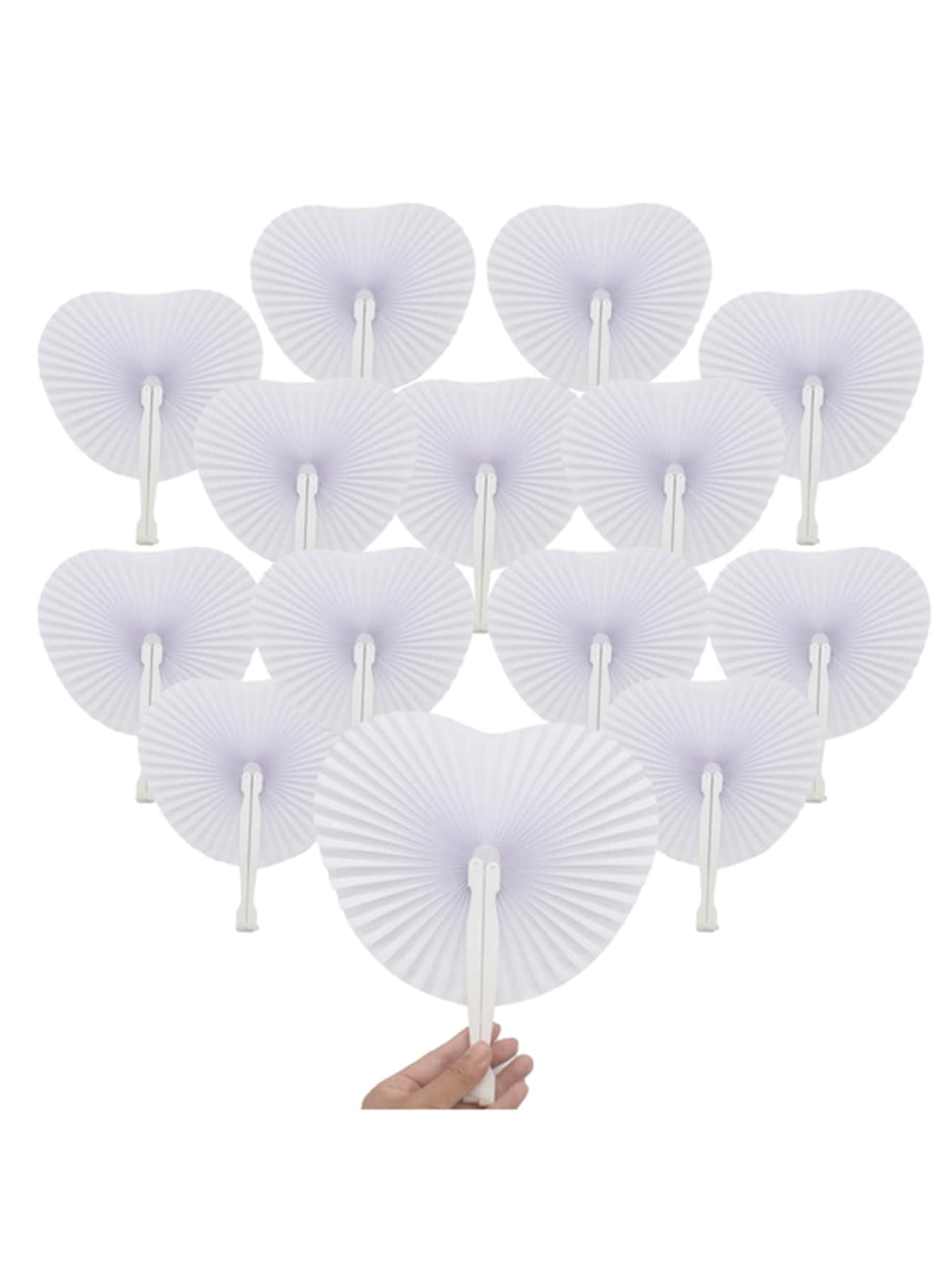 1入/12入白色心形空白紙扇,適用於歐式婚禮、diy派對用品、廣告、禮品等