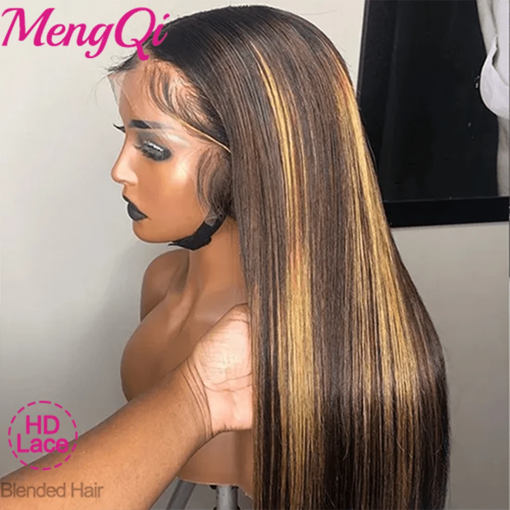 13x4 高光渐变蕾丝前额假发,高清隐形蕾丝,5*5 蕾丝前额假发,200% 密度真人混纺发,预先拔毛漂白发结,直发混纺真人发假发,女士款,28 英寸 #4/27 预拔毛高清蕾丝前额假发,带婴儿发。