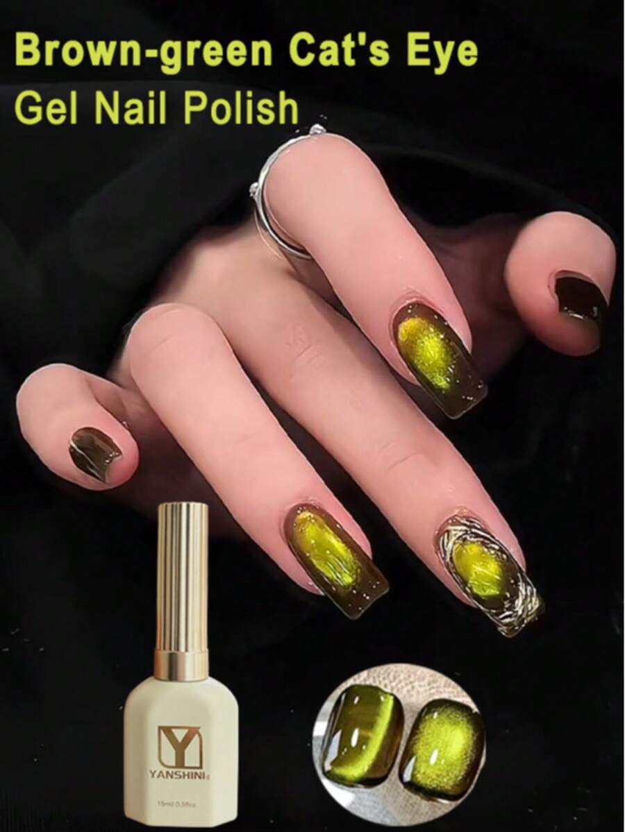 15毫升橄榄猫眼凝胶指甲油 – 磁性闪光效果,深绿色可卸UV/LED凝胶,打造亮泽美甲