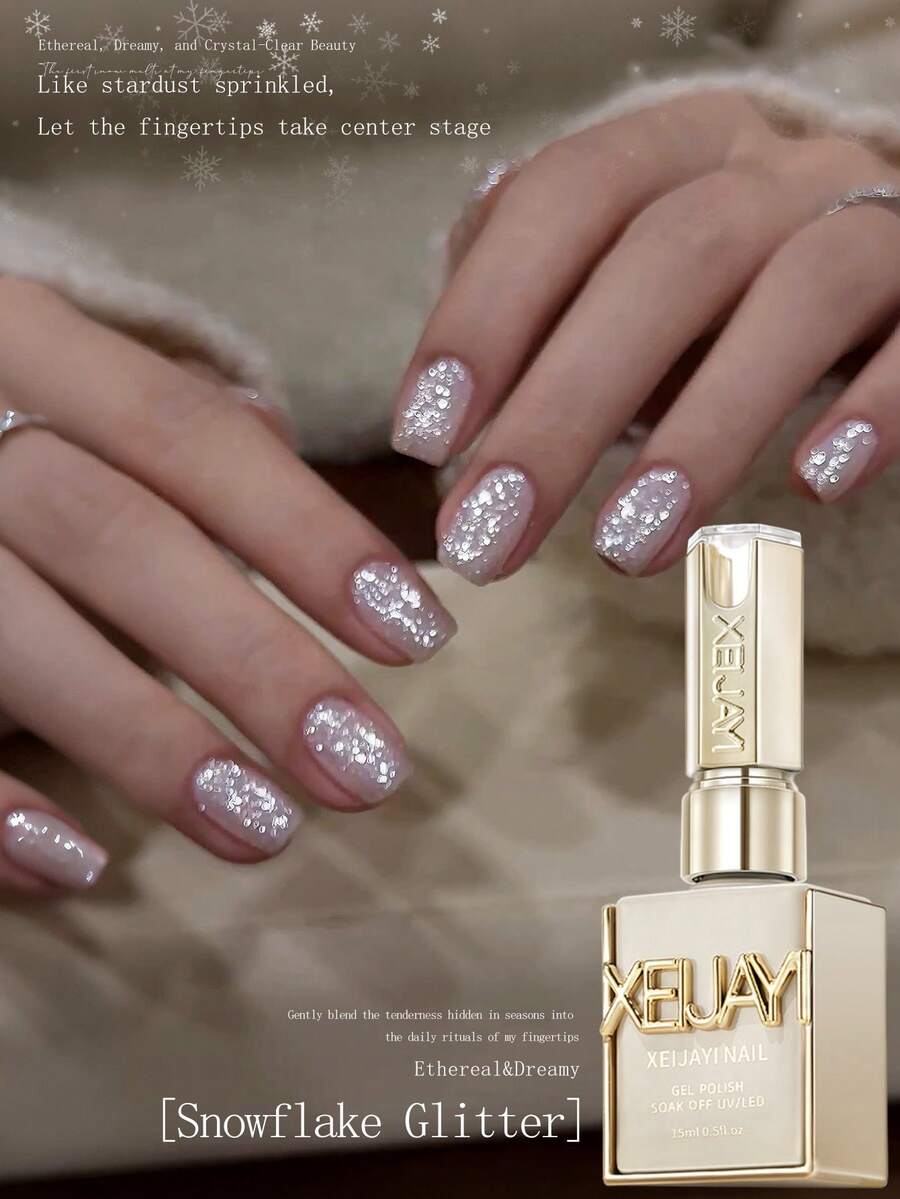 15毫升 XEIJAYI 雪花闪粉指甲油,全新亮白色闪粉美甲设计,适合女士美甲沙龙使用
