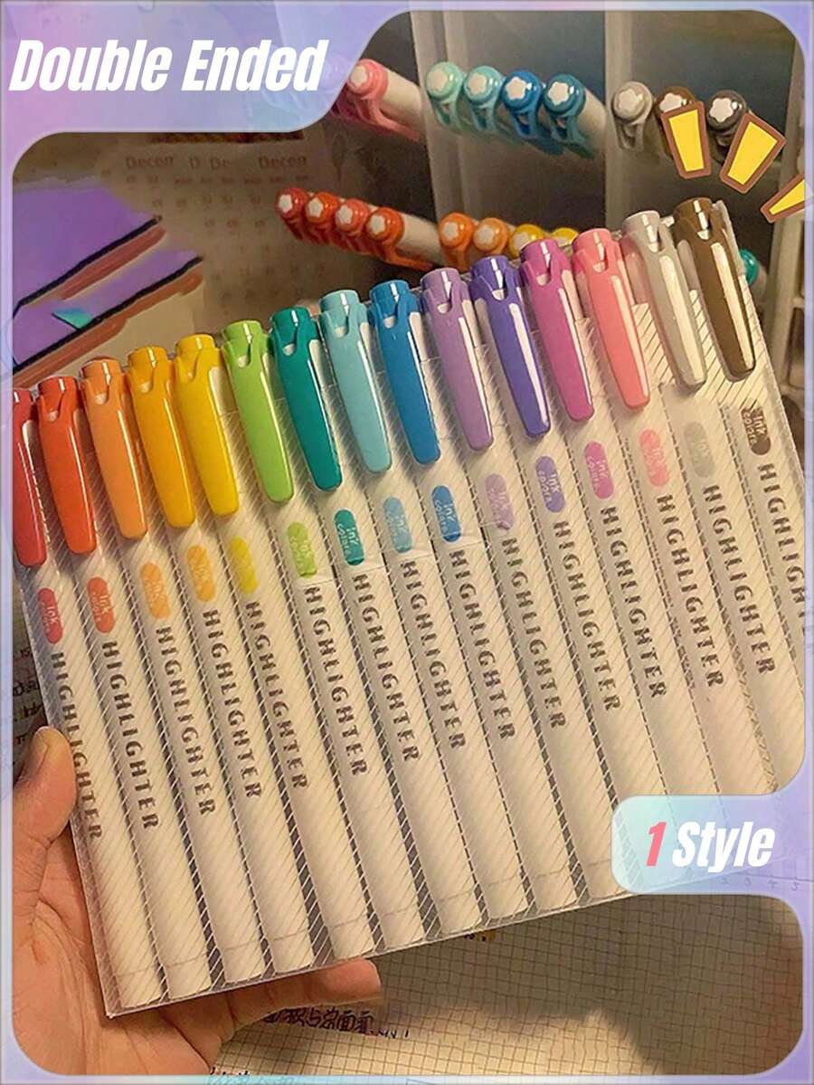 15支装双头荧光笔 17*14厘米 双头温和彩色荧光笔 荧光标记笔 用于涂色 下划线 宽头和细头 返校