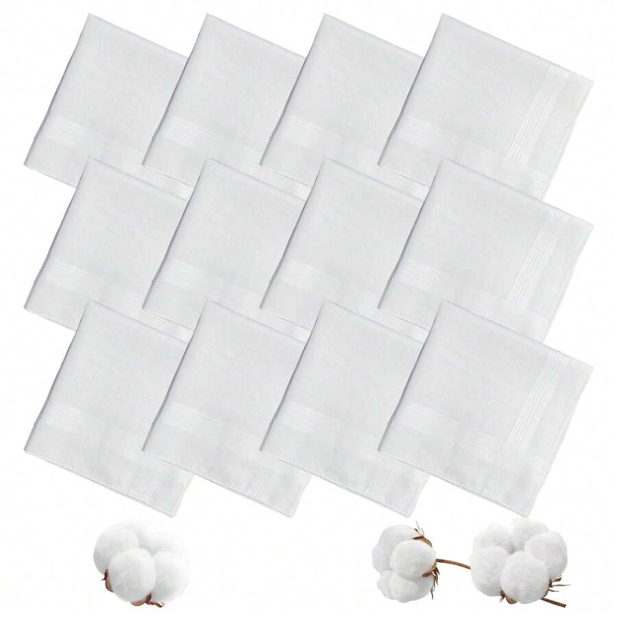 16英寸 x 16英寸 男士100%纯棉手帕,经典白色,透气可重复使用,绅士手帕