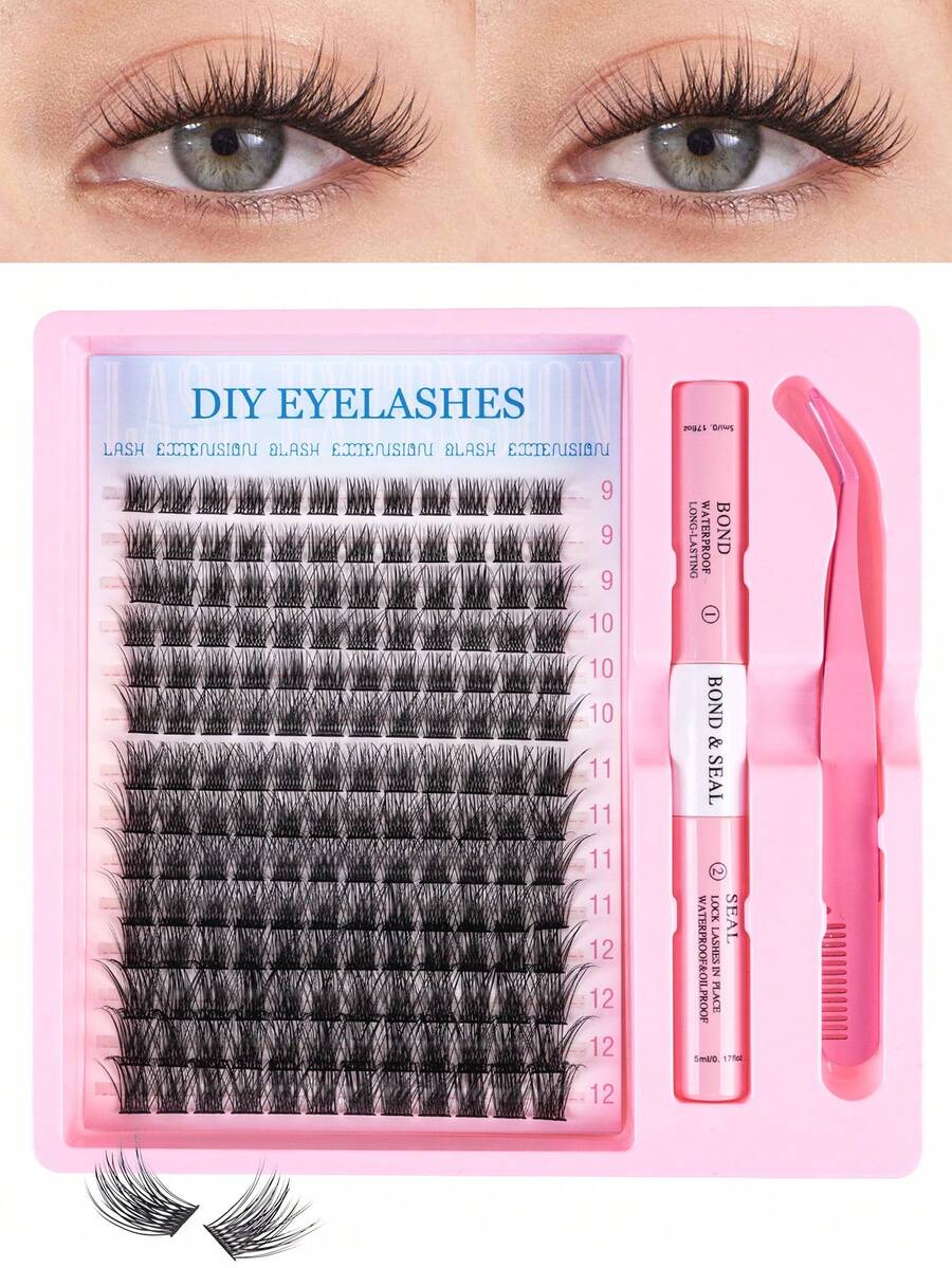 168 件 C 卷睫毛簇套装蓬松睫毛延长套装浓密簇状睫毛延长套装带粘合和密封睫毛涂抹器混合款式单根睫毛套装