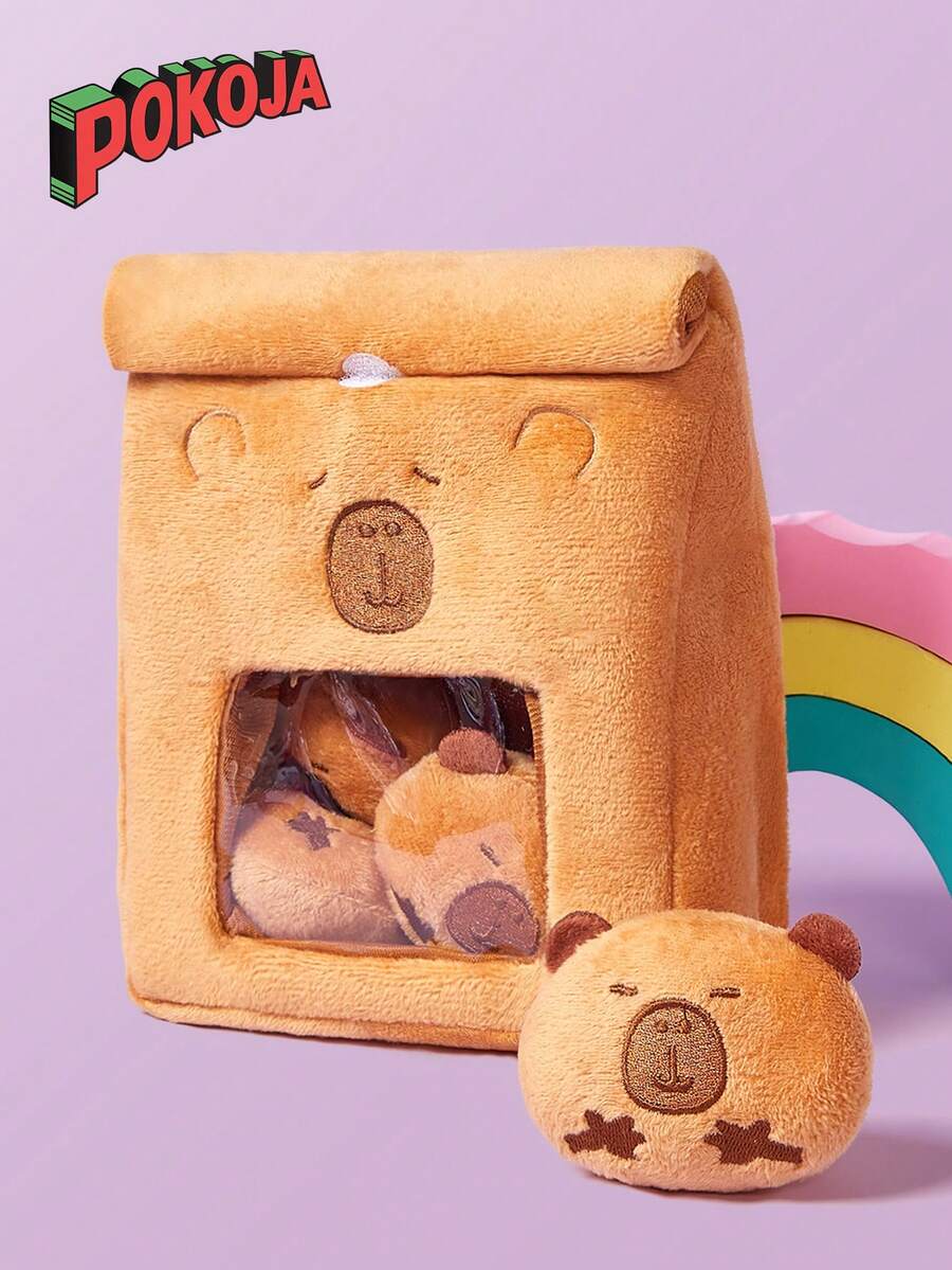 19厘米/7.48英寸可爱水豚包毛绒玩具包,内含4只可爱水豚毛绒动物,内含一袋面包水豚零食包,毛绒仿真水豚玩具,适合儿童圣诞节生日派对礼物房间装饰