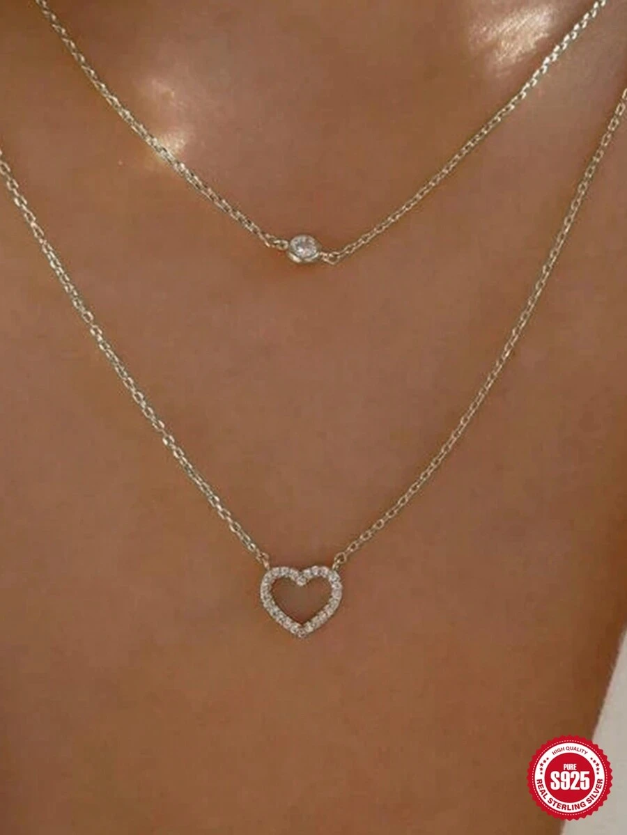 1入鍍18K黃金925純銀鋯石心形項鍊,可愛細緻的愛心吊墜項鍊,適用於女性日常、婚禮、派對、訂婚、紀念日、情人節等重要場合佩戴的精品珠寶