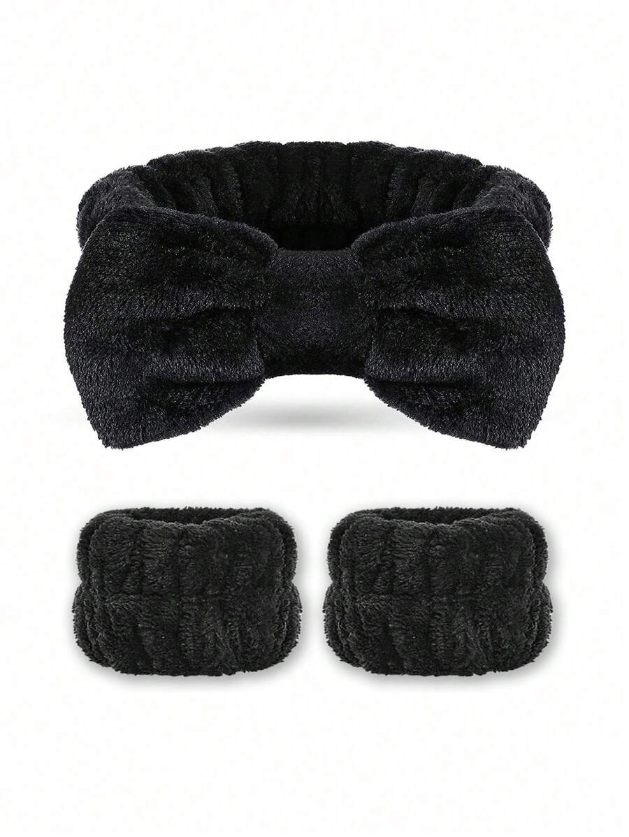 一套护肤头带和腕带,蓬松SPA化妆头带,方便洗脸,柔软舒适,是女性旅行和上学的必备单品,可爱发圈和护肤配件,非常适合万圣节装扮,也是送给女性的贴心生日礼物和圣诞节礼物。