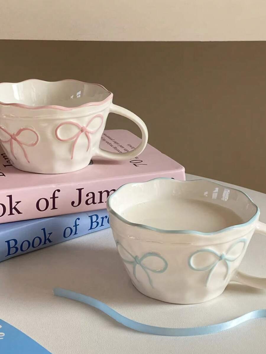 1个蝴蝶结马克杯,陶瓷材质,大容量,饰有丝带蝴蝶结,可作为咖啡杯送给朋友、女朋友,也适合作为返校季、生日、情人节、水杯、情侣杯或母亲节礼物。