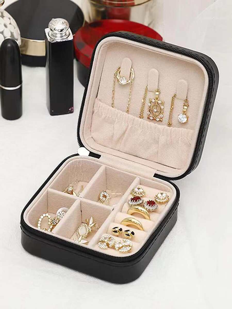 1个迷你首饰收纳盒,旅行首饰拉链盒,耳环项链戒指便携式首饰盒,皮革材质,首饰盒,送给女性、女孩、女朋友的礼物,返校旅行必备,海滩夏季度假收纳包,化妆包,化妆品收纳盒,化妆品整理包,化妆包,返校用品
