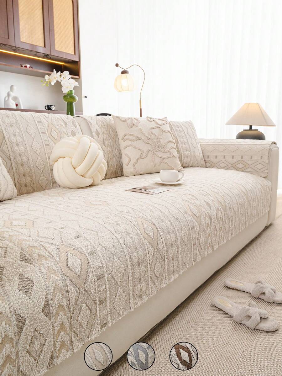 1件复古几何图案半磨砂提花沙发垫,新款毛绒座椅垫,宠物防抓,适用于1-4座沙发,四季通用,可机洗