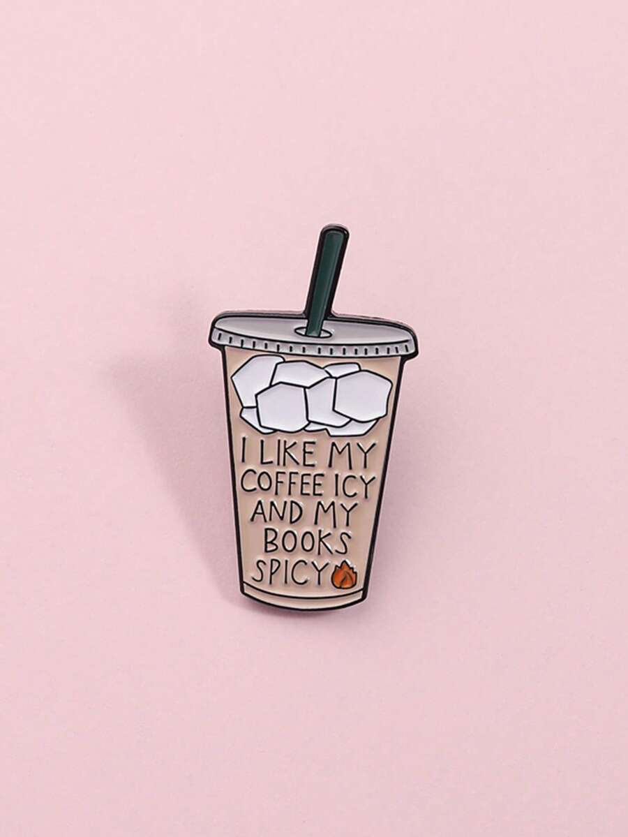 1枚“我喜欢冰咖啡和辛辣书籍”珐琅胸针,趣味咖啡书饮料胸针,背包翻领徽章,珠宝礼物