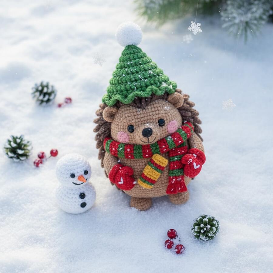 一套圣诞钩针编织入门套装,成人钩针编织入门套装,附带分步文字教程,刺猬DIY编织套装,可爱有趣的家居装饰品,生日、情人节、万圣节和圣诞节礼物