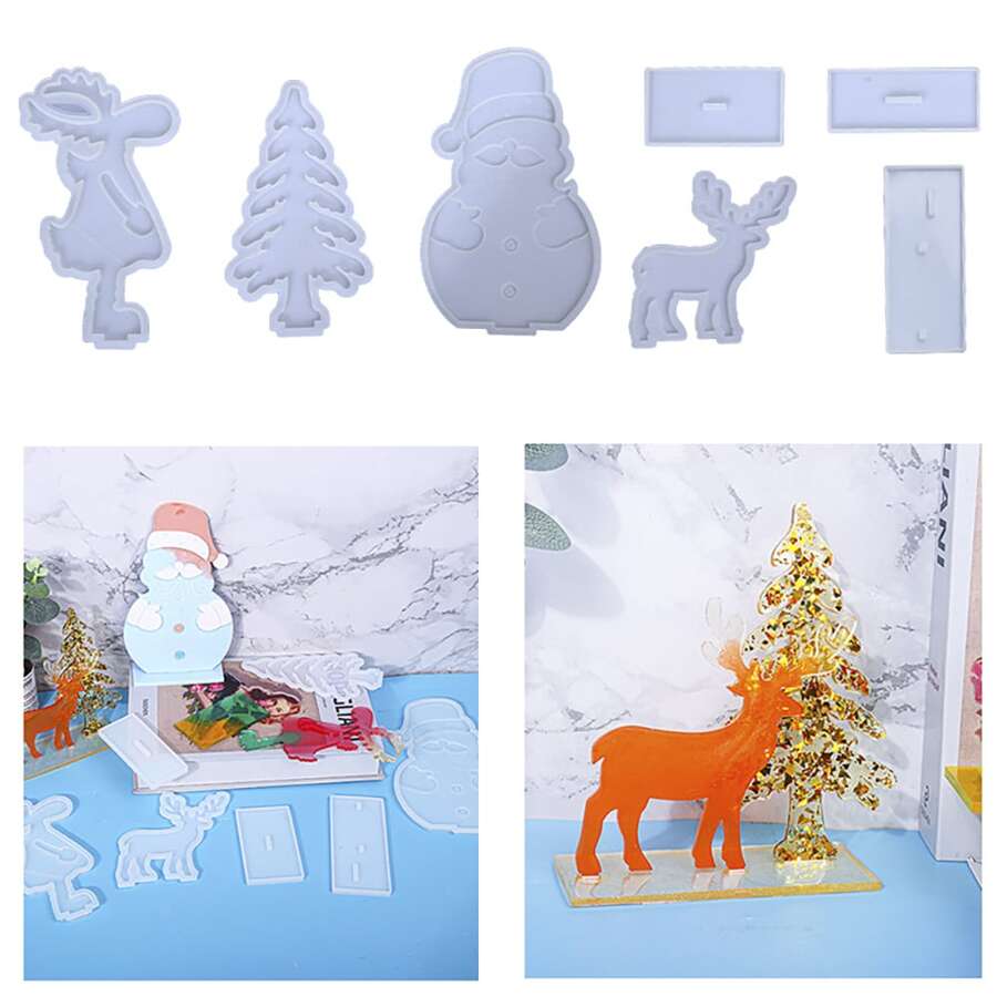 1件套DIY滴膠模具矽膠模具聖誕駝鹿小鹿雪人聖誕裝飾物矽膠模具用品甜美風裝飾Kawaii工藝UV樹脂模具適用於聖誕女孩
