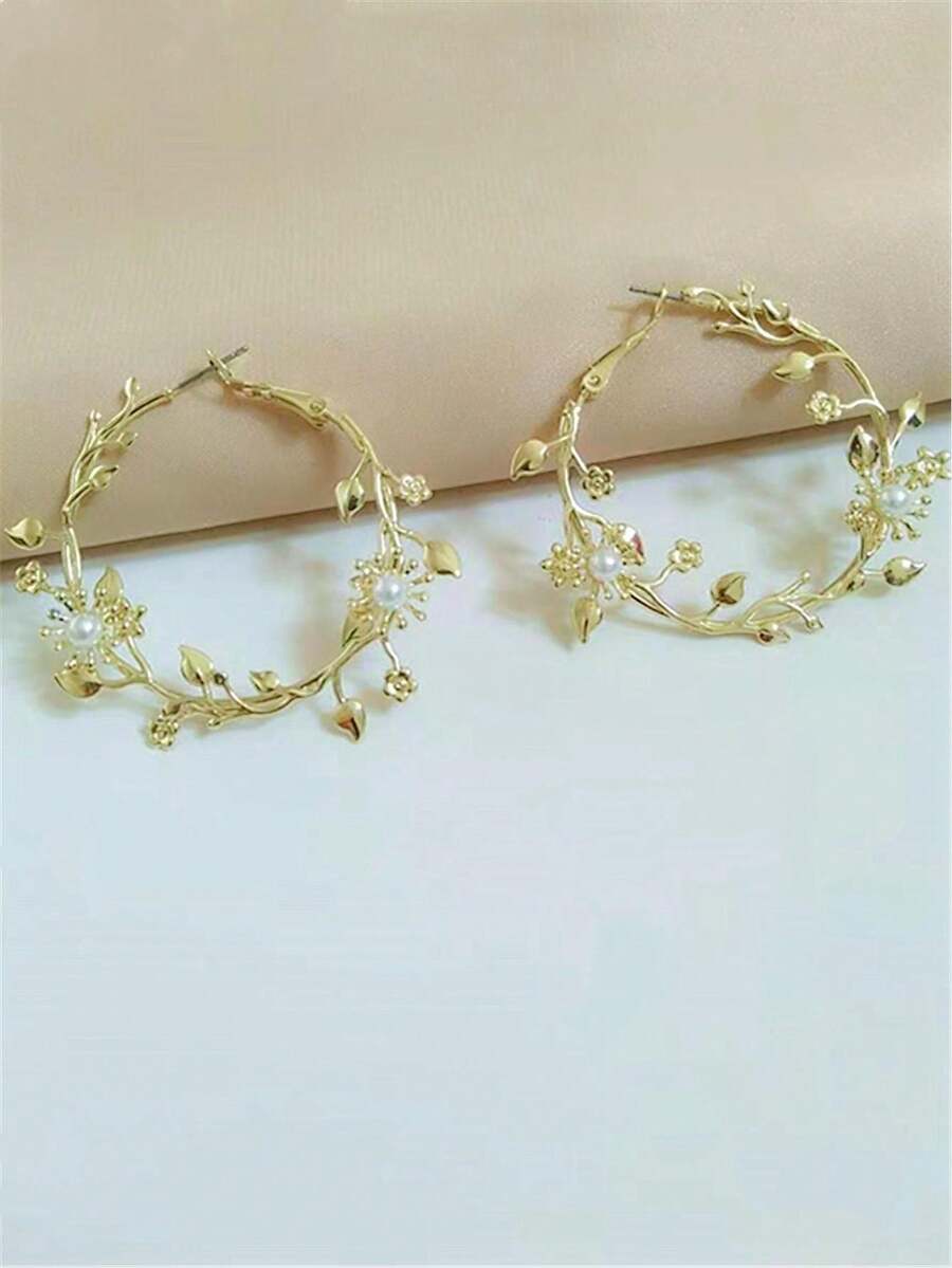 1 對新品甜刺莖和玫瑰花設計耳環,鏤空設計和鍍金打造精緻外觀