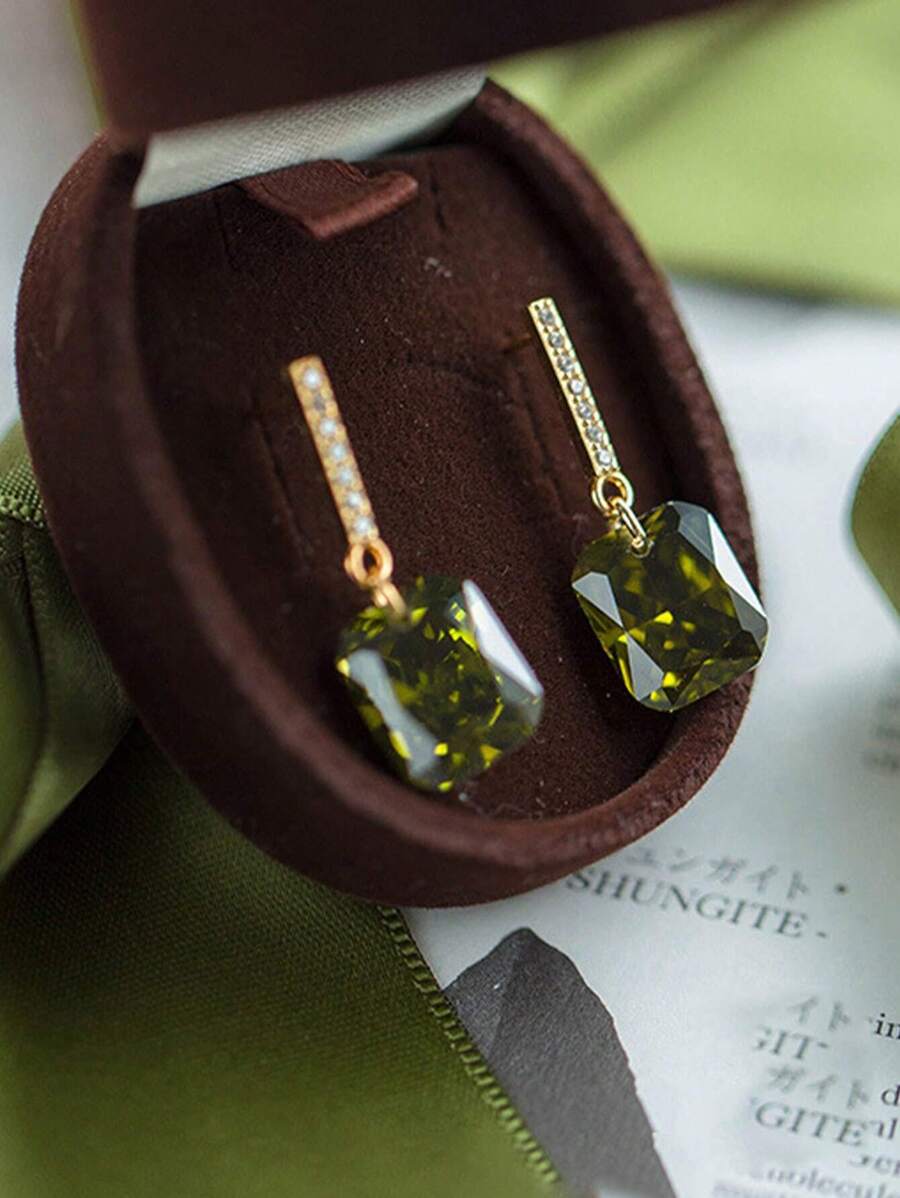Stylever 一对橄榄绿耳环,S925纯银,优雅奢华,精致珠宝,适合婚礼、晚宴、派对等场合,是节日送礼的理想之选。
