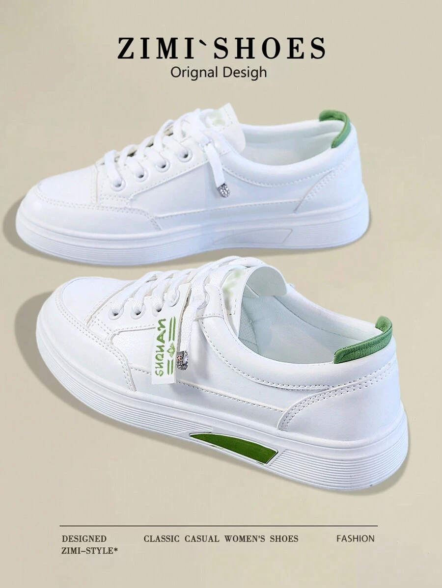 1 双女式白色一脚蹬休闲运动鞋,圆头户外防水皮革休闲鞋,适合春秋季