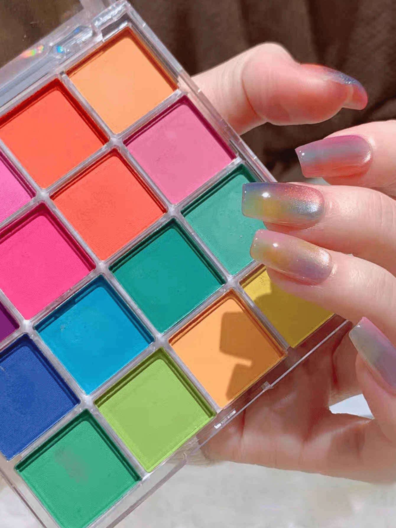 1盒16色渐变眼影盘,极光镜面美甲闪粉,适用于化妆、美甲DIY和美甲沙龙
